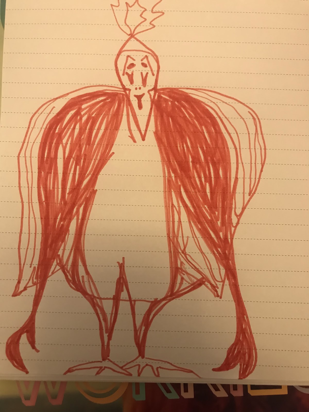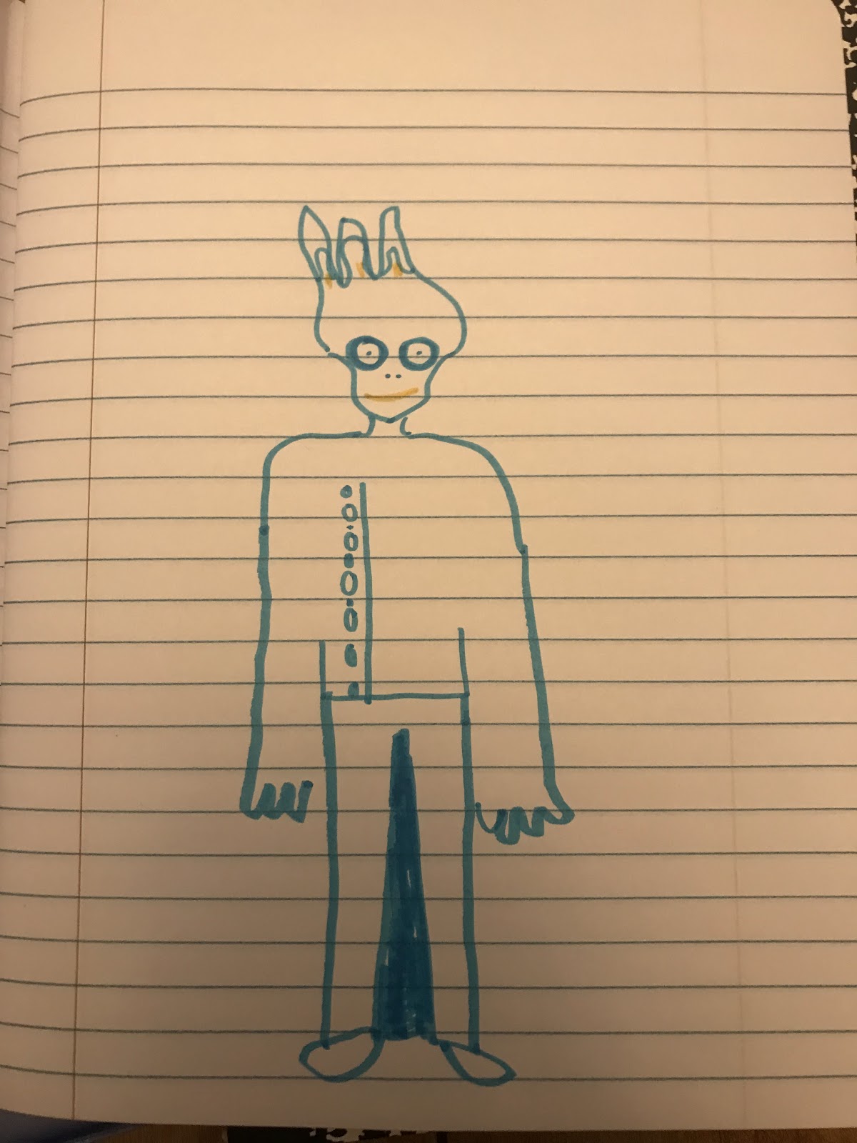 I’m going to describe a monster that I was very afraid of as a child. As I describe the monster, you draw what I describe. Okay?